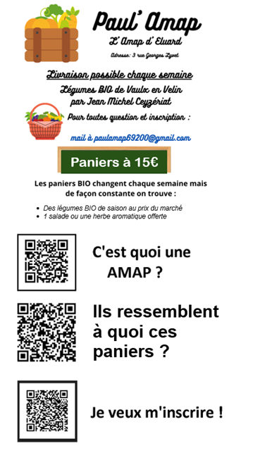 Pour info : les paniers à 15 euros correspondent à un prix de 16 euros au marché minimum. En effet, Jean Michel CEYZERIAT (notre producteur) nous offre toutes les semaines une salade ou une herbe aromatique. Merci à lui!